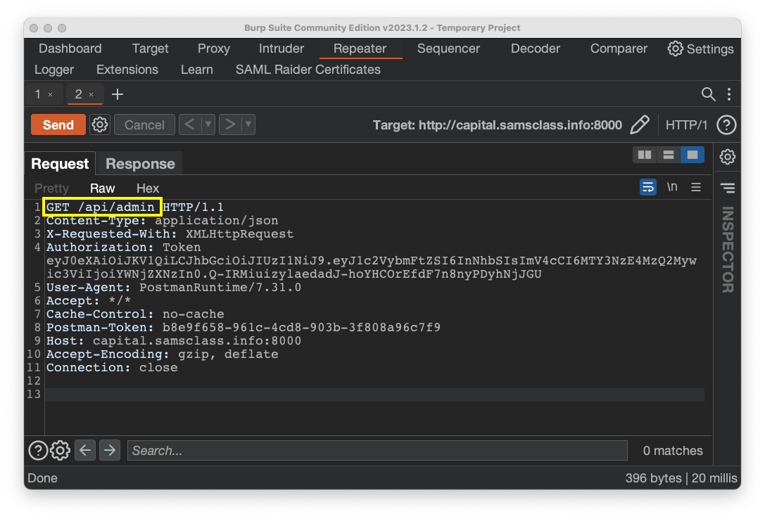 Click the Response tab.The flag is covered by a green rectangle in the image below.