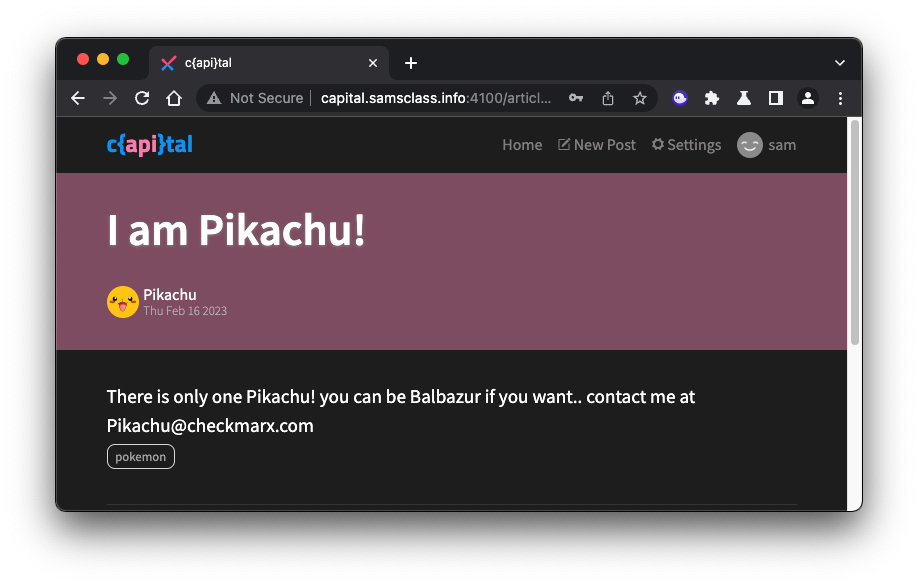 The post titled "I am Pikachu!" contains an email address, as shown below.