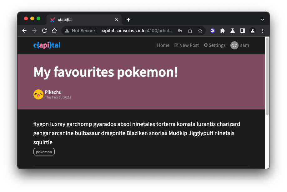 The post titled "My favourites pokemon!" contains a list of words, as shown below.
