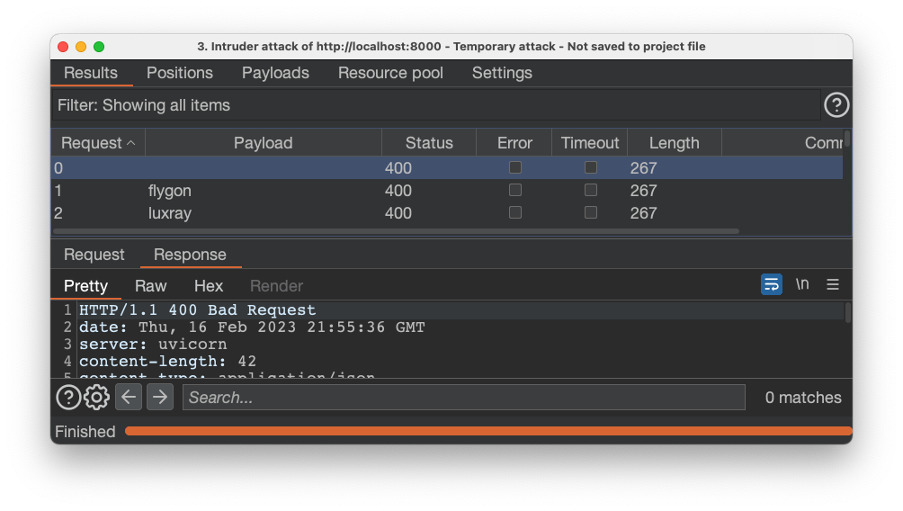 The attack proceeds, as shown below.Find the login request that has a different response from the others, and find the flag in that response.