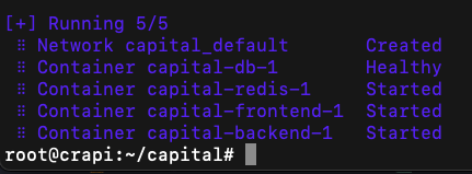 sudo apt -y install git git clone https://github.com/Checkmarx/capital.git cd capital ls sudo docker compose up -d