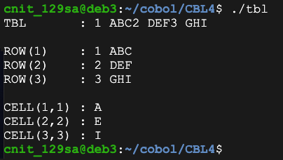 DISPLAY 'CELL(1,1) : ' CELL(1,1).