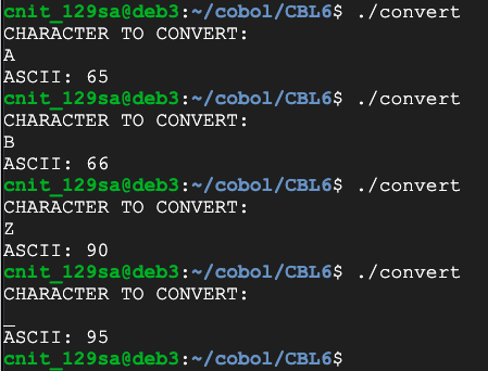 DISPLAY 'CHARACTER TO CONVERT:'.