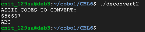 CALL 'TOASCII' USING WS-LETTER, WS-CODE.