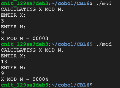 CALL 'MOD-SUB' USING WS-X, WS-N, WS-X-MOD-N