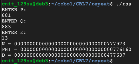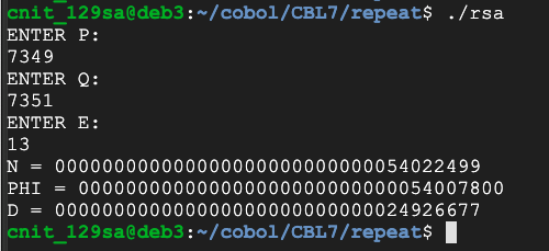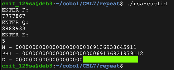 To handle larger keys, we need a faster way to find multiplicative inverses.Write a faster function to calculate d using Euclid's Algorithm. Change all variables to PIC 9(36), the maximum available in COBOL.