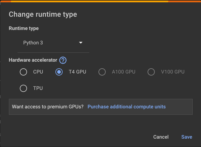 Change the Hardware Accelerator to "T4 GPU", as shown below.