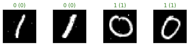 color=("green" if labels[idx].item()==preds[idx].item() else "red"))