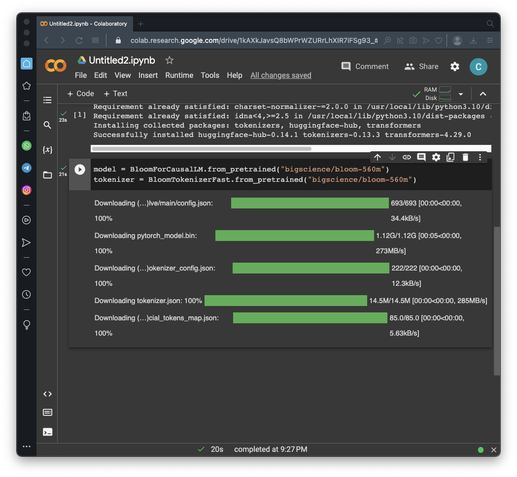 model = BloomForCausalLM.from_pretrained("bigscience/bloom-560m")