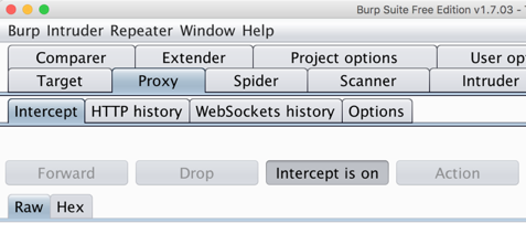 Click the "Intercept is off" button, so the message changes to "Intercept is on", as shown below.