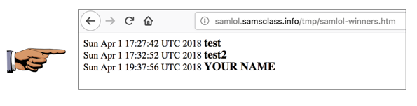 Use the form on the winning page to add your name to the winners board, as shown below.