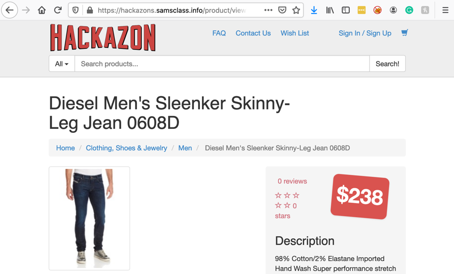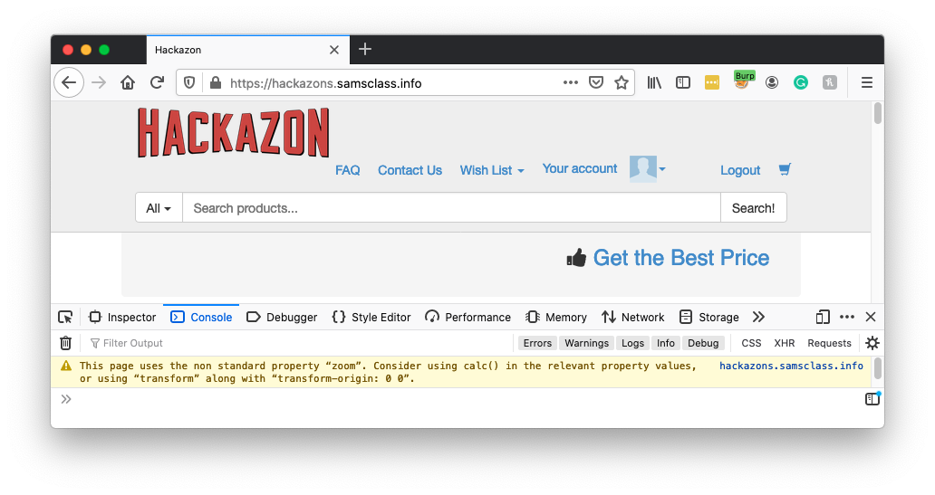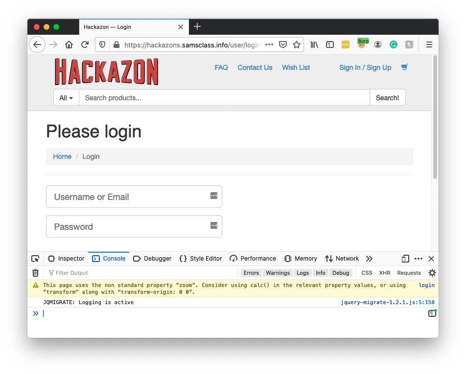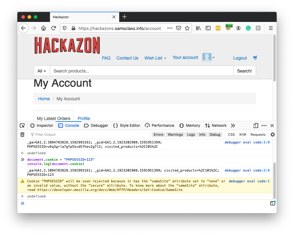You see a login page, as shown below. Changing the PHPSESSID value made Hackazon forget who you were.