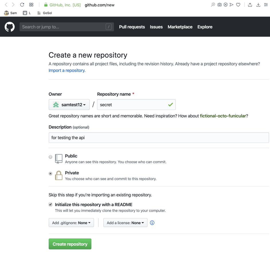 Create a new private repository, as shown below.