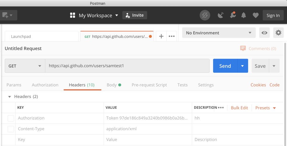 On the Headers tab, clear the check box next to any extra headers you may have left over from a previous project, such as the Authorization and Content-Type headers in the image below.