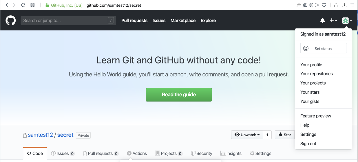 Set the URL to this, replacing "samtest1" with your Github ID: