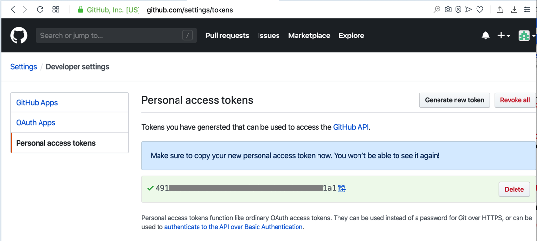 Your token appears, as shown below.