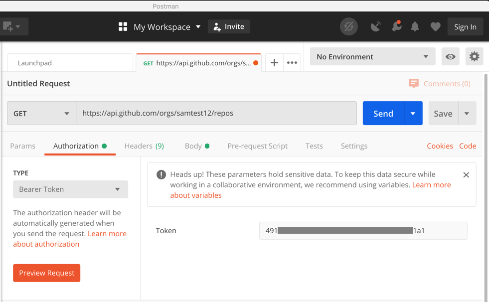 Select a TYPE of "Bearer Token".