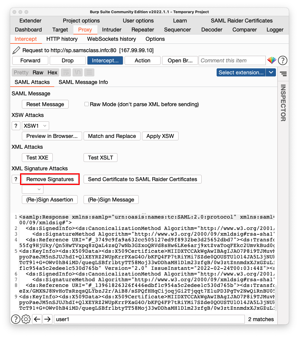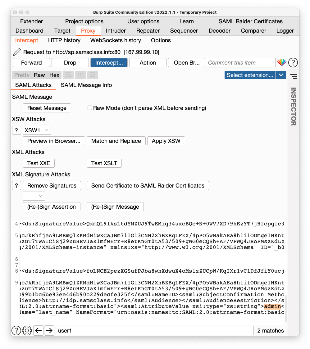 We don't have a way to correct the signature, so we'll just ignore that problem and see if the Service Provider falls for it. Maybe the Service Provider isn't actually validating the signatures. This happens frequently, because people have difficulty correctly configuring validation tests and just disable them.