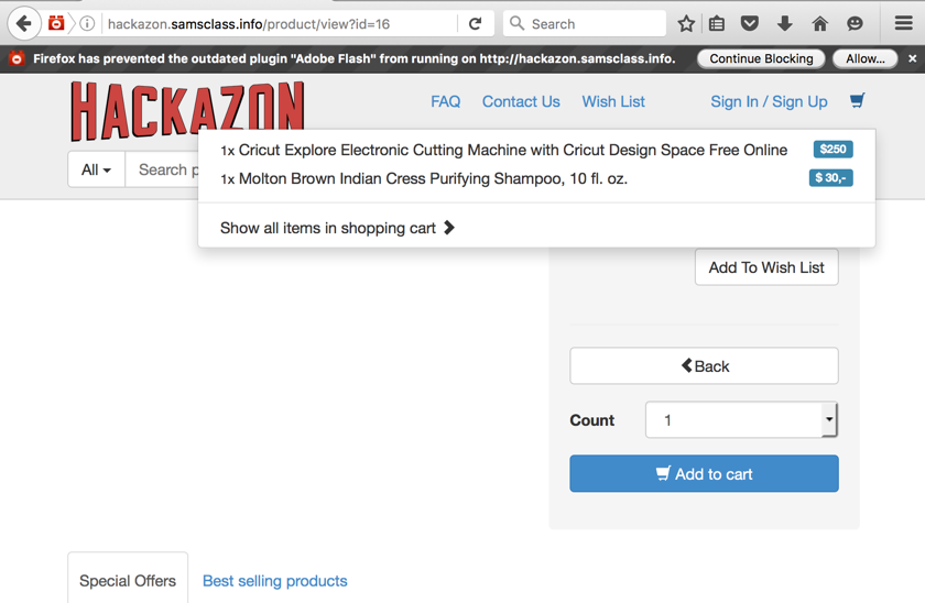 Look at the top right of the Hackazon page and ensure that you see the "Sign In/Sign Up" link, as shown below. If you don't see it, click Logout.