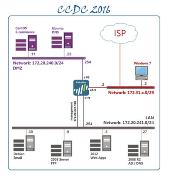 Networking EquipmentConfiguring routers and switches; using Packet TracerConfiguring firewalls Windows ServersCommon Services: IIS, SQL Server, Exchange, and Domain ControllersFinding and Patching Vulnerabilities: MBSA Linux ServersEssential Versions: Ubuntu, Fedora, FreeBSD, and SolarisServices: Apache, Bind, and Sendmail ProtocolsHTTP, HTTPS, DNS, SMTP, POP3, SSH, FTP, SQLIntrusion DetectionSnort, Splunk, Configuring Logging, Network MonitoringInjectsMigrate a Website from IIS to Apache | |
