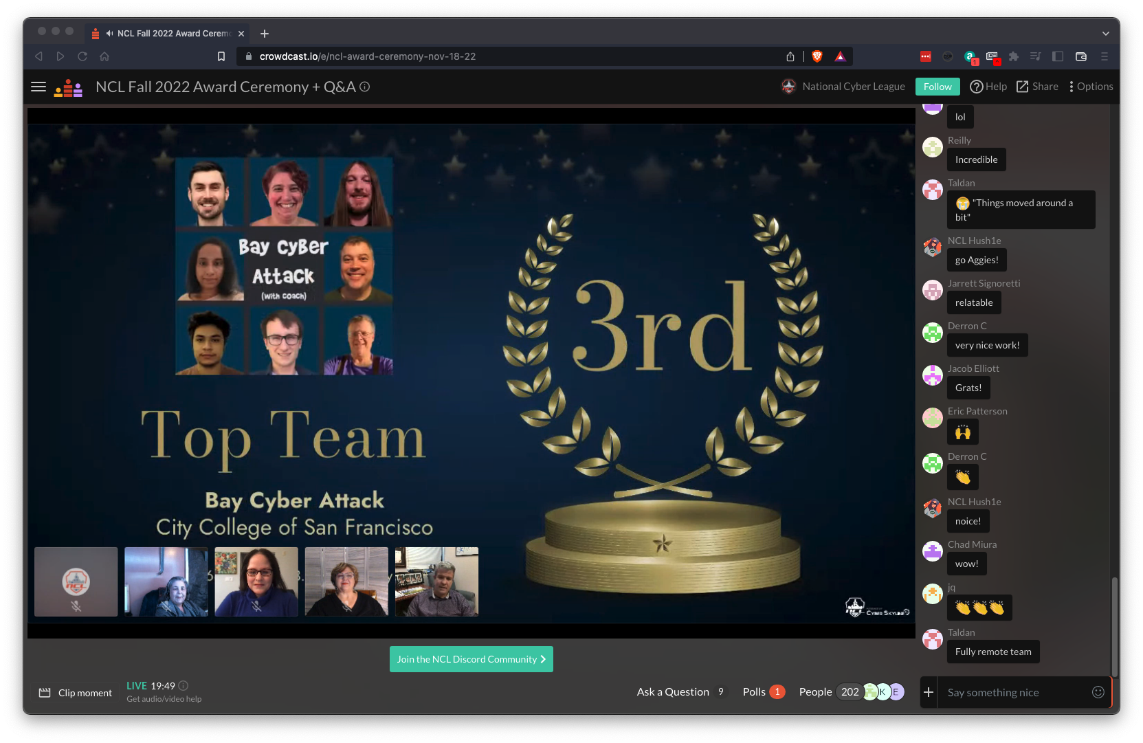 From Top Left in clockwise order: Peter Buffon, Karen Corscadden, Sean Dixon, Shannon Scire, Sam Bowne, Maximillian VonBlankenburg, Cristian Carrillo Mendez, Hema Loganathan