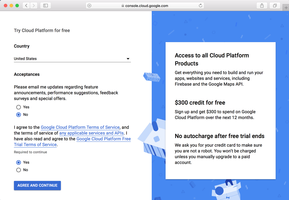 On the next page, fill out the form, as shown below, and click "AGREE AND CONTINUE".