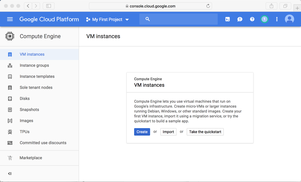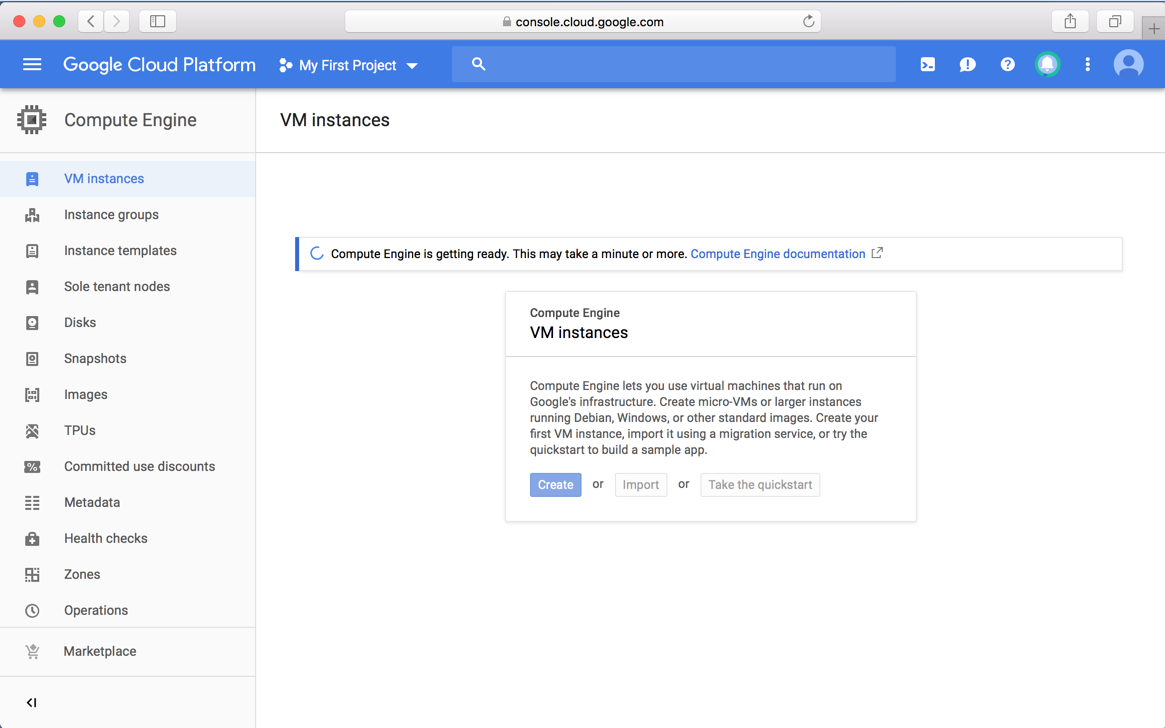 The "VM instances" page appears, as shown below.