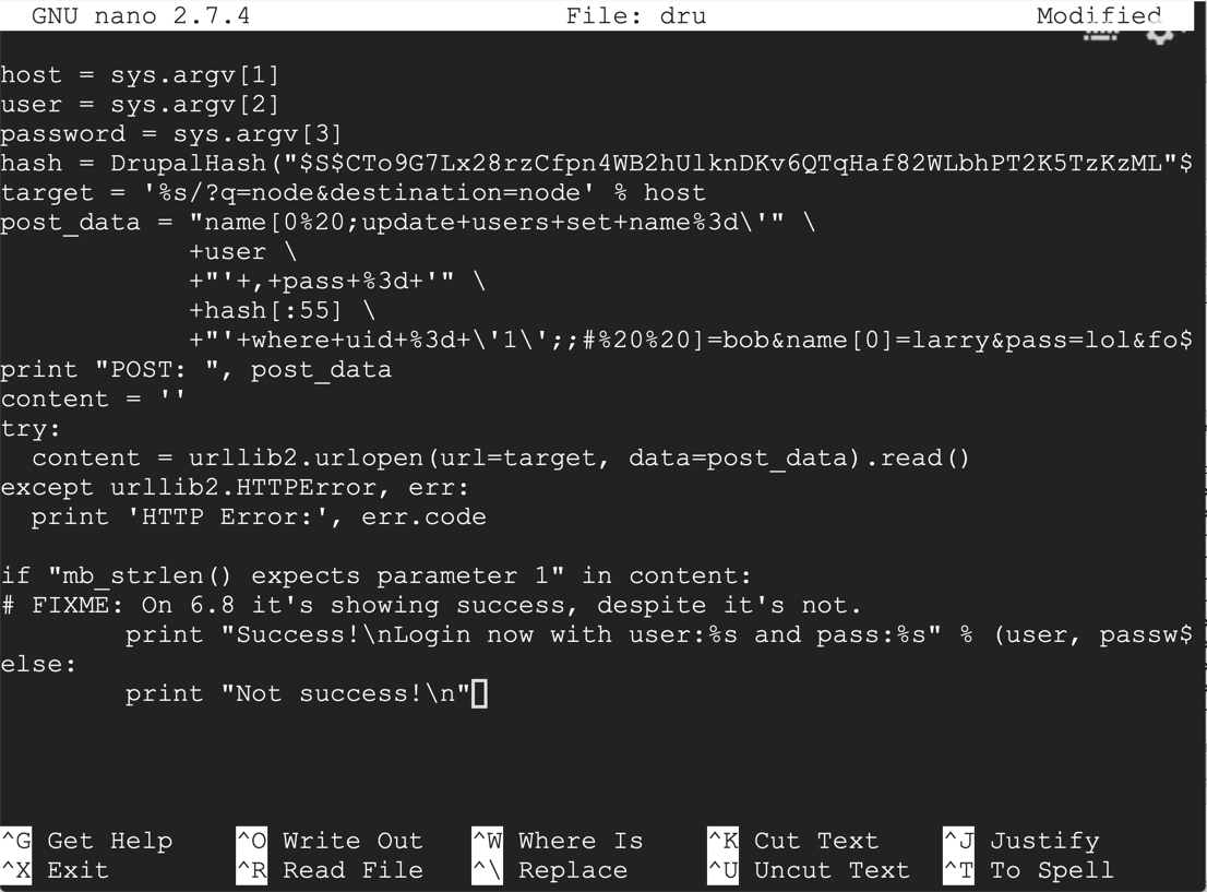 Save the file with Ctrl+X, Y, Enter. On your Debian attack server, execute this command to make "dru" executable: