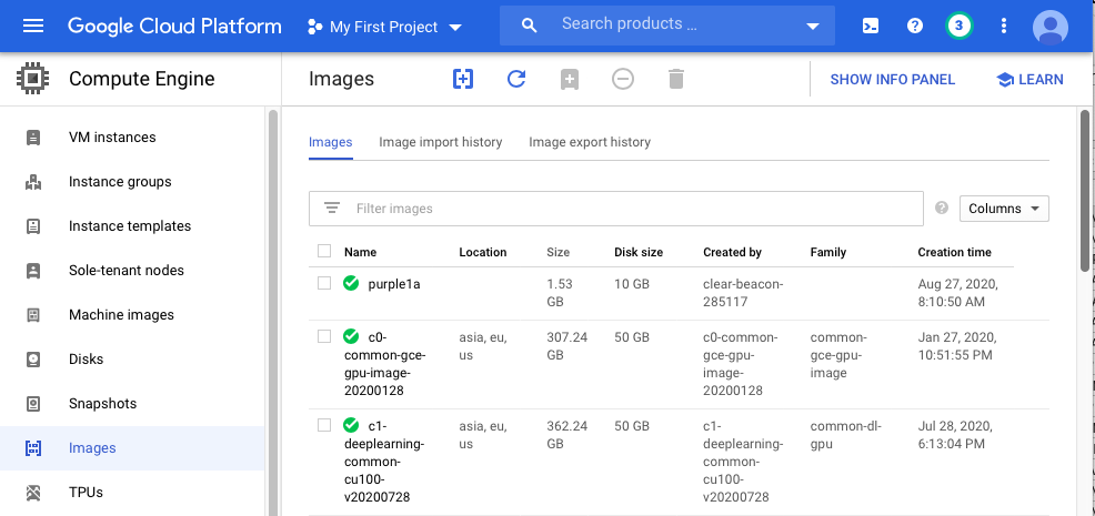 In Google Cloud Platform, on the left side, click "Compute Engine", Images, as shown below.