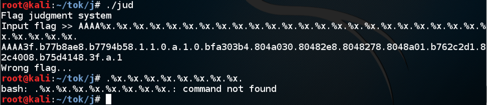 However, I could simply redirect execution to the part of the code that prints out the flag. To do that, I still need to find the parameter that contains my injected text. Since I can't use a long string of "%x" format codes, I switched to the "%number$x" format, like this: