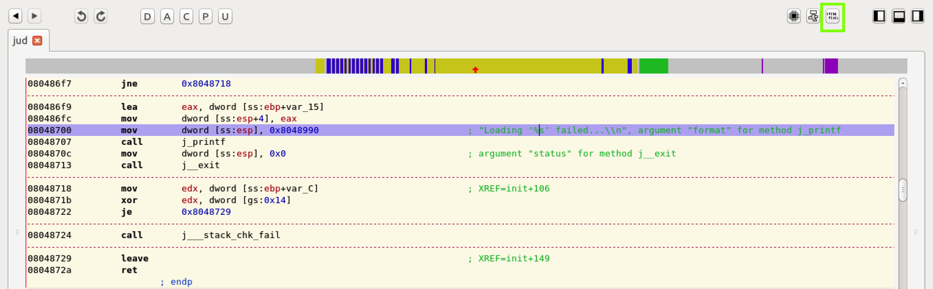 Double-clicking init+115 on the right side shows the code that uses this string. On the top right, notice the icon outlined in green in the image below.
