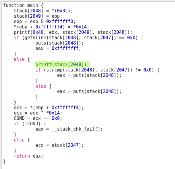 0x080487a2 <.+119>: call 0x80484e0 <.printf@plt> FORMAT STRING VULN HERE