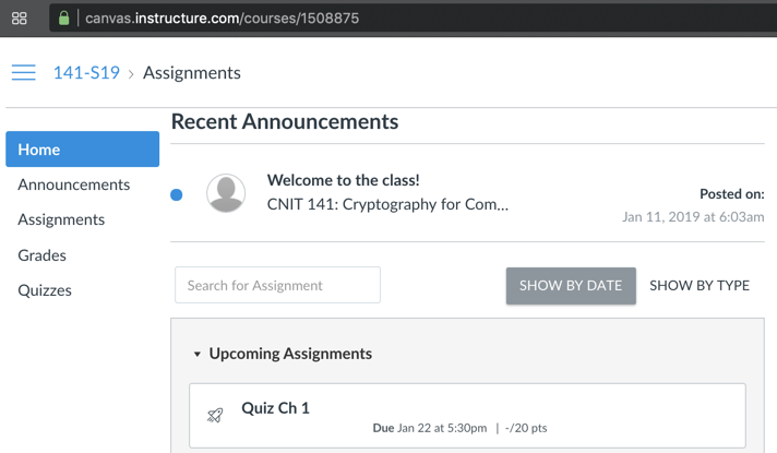 Course JustificationIndividuals, companies, and governments all have private data on their computer systems that must be protected. However, the encryption techniques required to protect them are difficult to apply, and often fail in practice. There is a serious shortage of information technology professionals who are qualified to install, repair, and maintain cryptographic security measures. This class helps students prepare to meet those needs. Catalog DescriptionMathematical underpinnings and practical applications of modern cryptographic systems, including the Advanced Encryption Standard (AES), the Secure Hash Algorithms (SHA), and Rivest-Shamir-Adleman (RSA). The class focuses on practical applications: selecting, implementing, testing, and maintaining systems to protect data on modern computer networks. Student Learning OutcomesUpon successful completion of this course, the student will be able to: Textbooks"Serious Cryptography: A Practical Introduction to Modern Encryption", by Jean-Philippe Aumasson, No Starch Press (November 6, 2017), ISBN-10: 1593278268 ISBN-13: 978-1593278267 QuizzesThe quizzes are multiple-choice, online, and open-book. Study the textbook chapter and take the quiz before that class. Each quiz is due 30 min. before class. Each quiz has 5 questions, you have ten minutes to take it, and you can make two attempts. Live StreamingTo join the livestream, use this Zoom link: For class-related questions, please emailcnit.141@gmail.com |