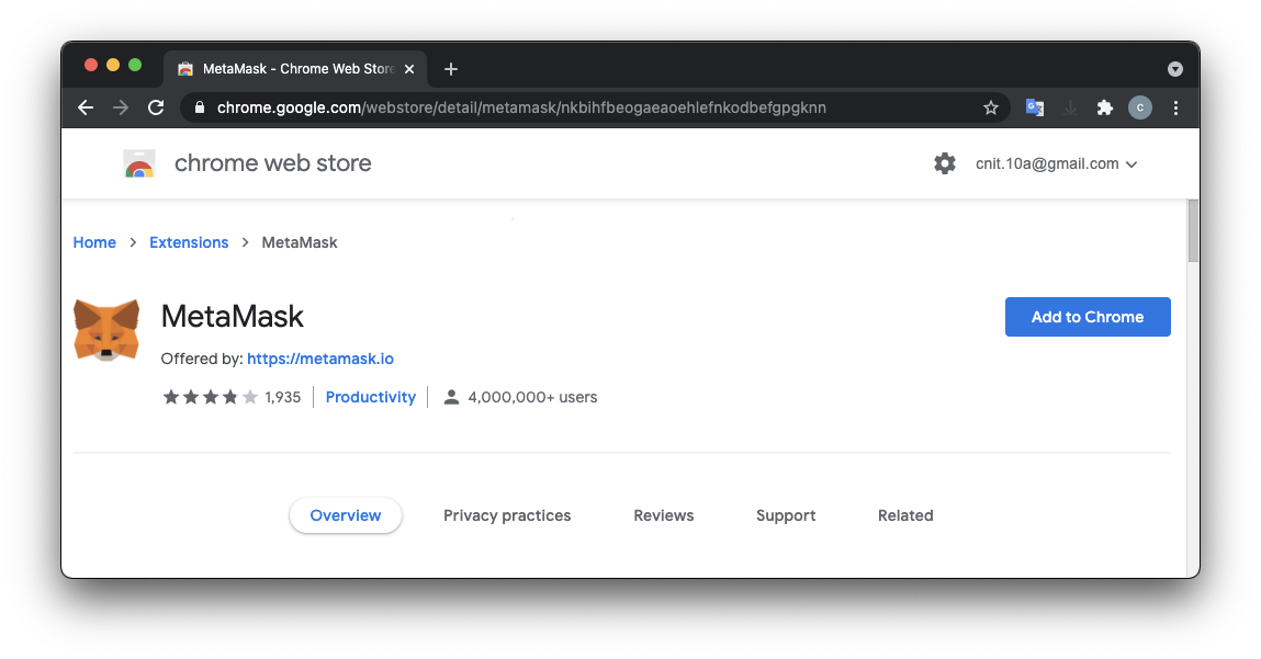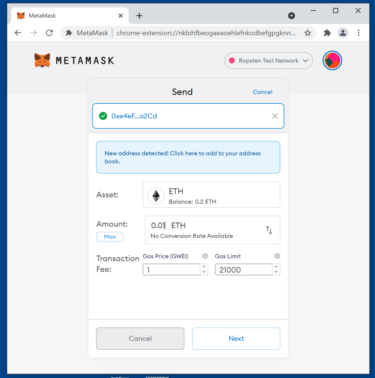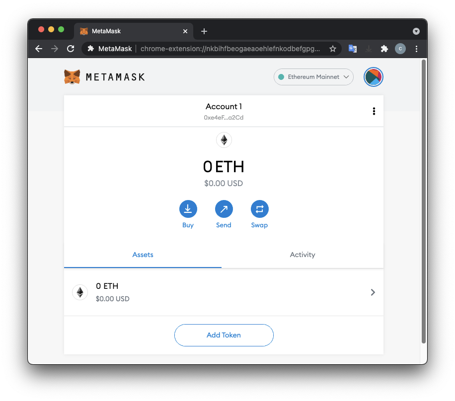 Now you have a wallet containing 0 ETH, on the Mainnet, as shown below.