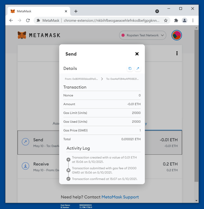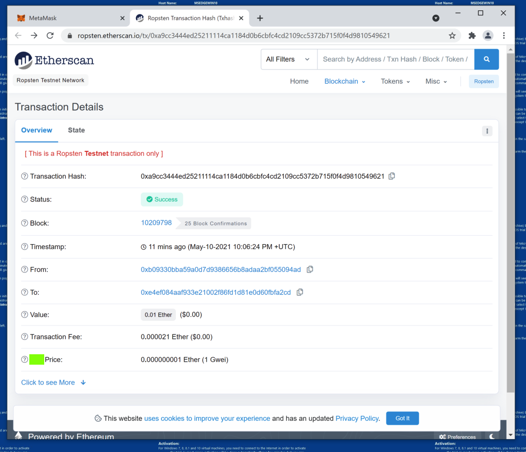 A box pops up with more information. At the top right, click the diagonal arrow to view this transaction on Etherscan, as shown below.