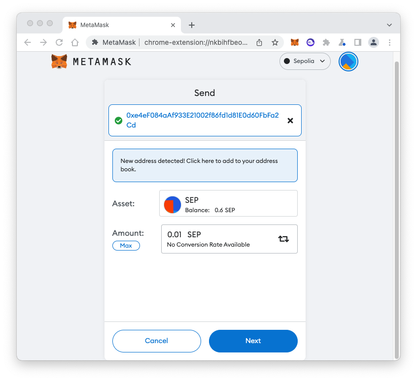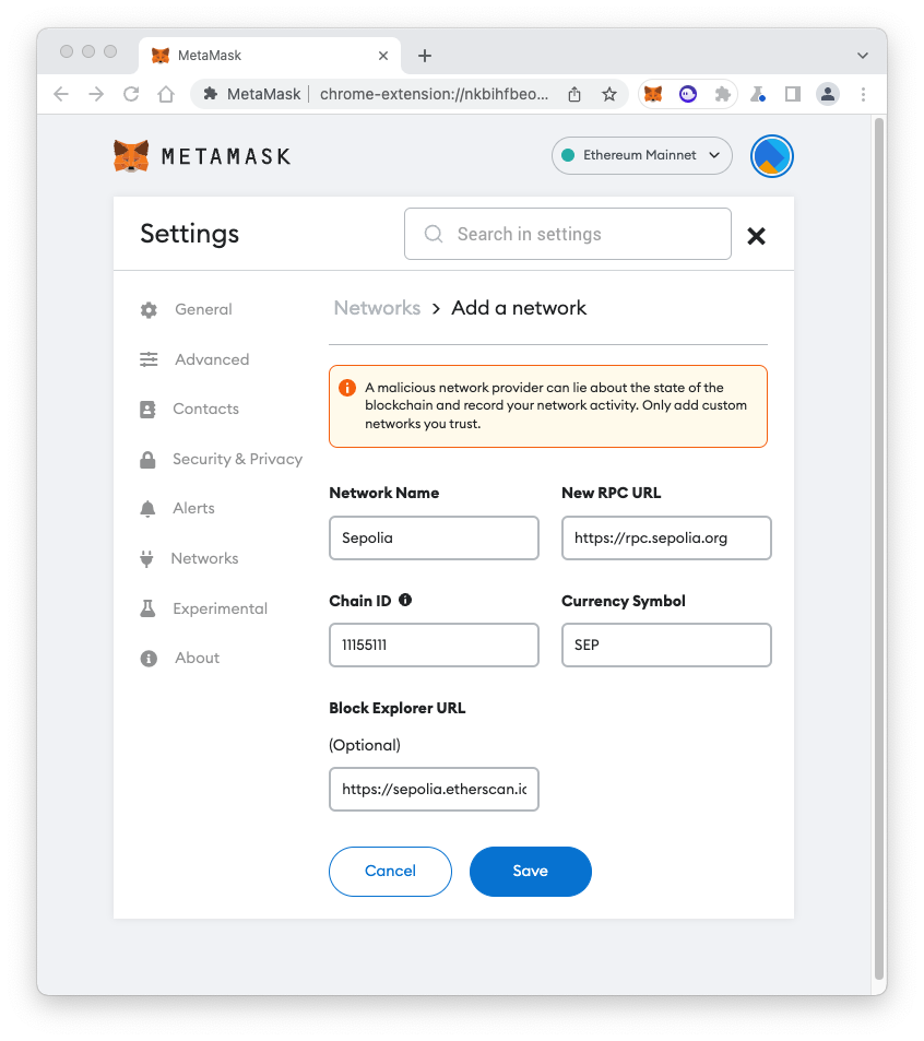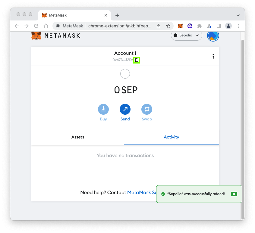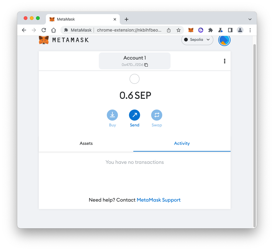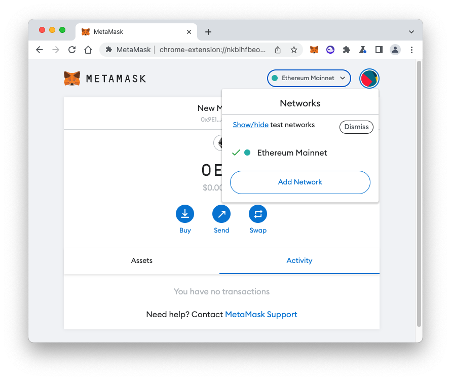 Now you have a wallet containing 0 ETH, on the Mainnet, as shown below.