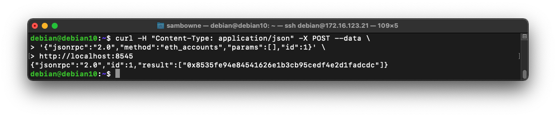 '{"jsonrpc":"2.0","method":"eth_accounts","params":[],"id":1}' \