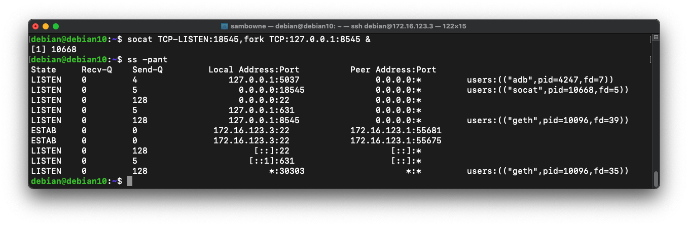 socat TCP-LISTEN:18545,fork TCP:127.0.0.1:8545 &