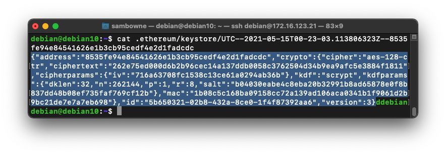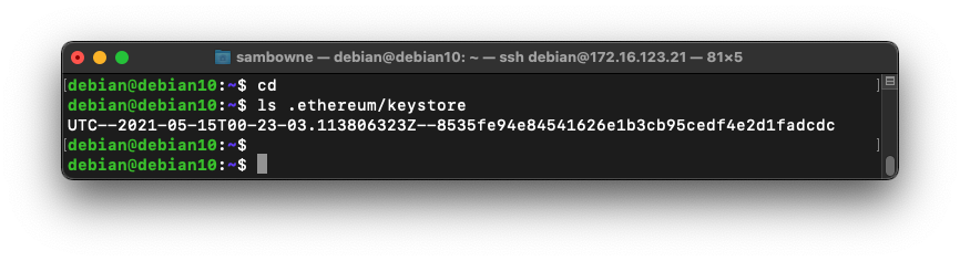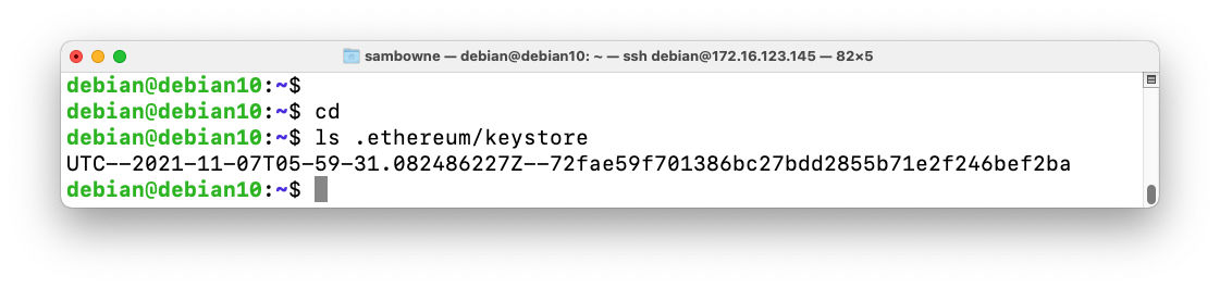 On your Linux machine, execute these commands:You see the name of your keystore, which begins with "UTC", as shown below.