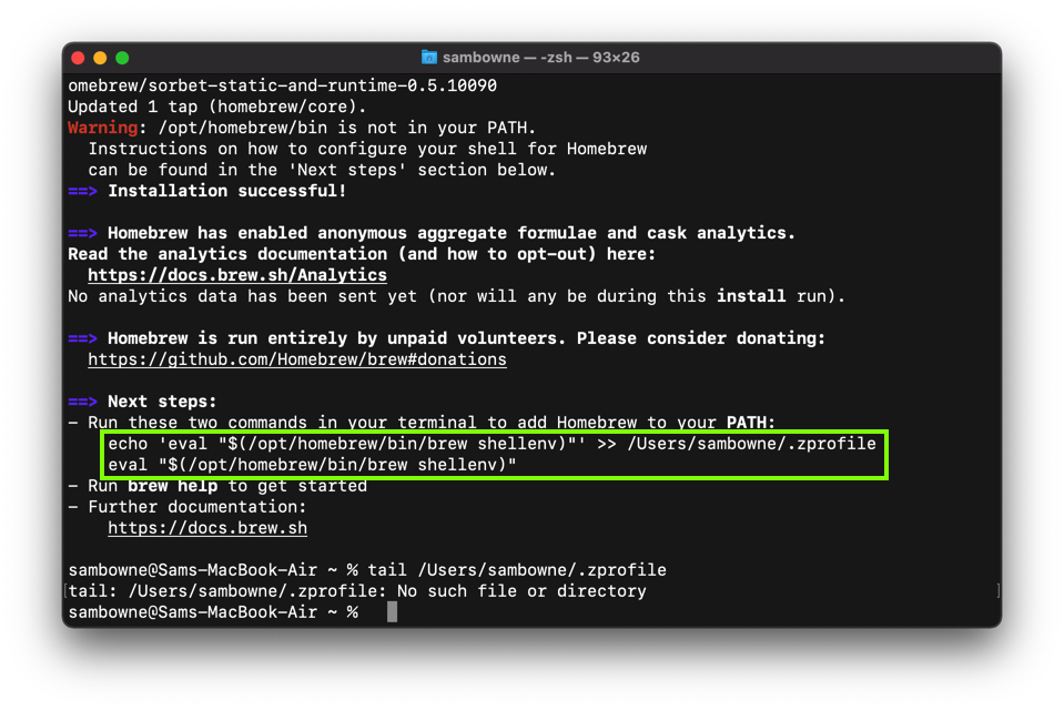 If Homebrew is installed, you will see a help message.