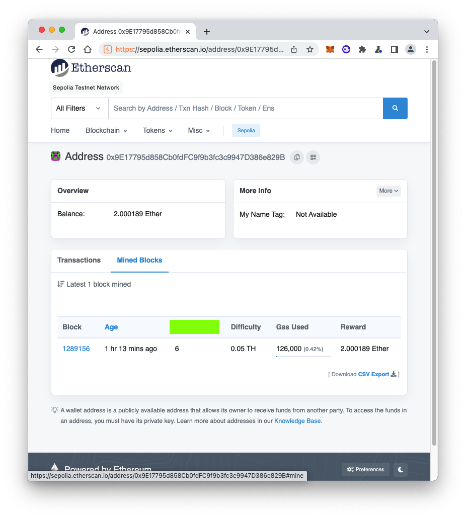 Once you have earned some seppETH, go to this website: Set the search type to Addresses and search for your miner's etherbase address.There are no Transactions, but you will see some "Mined Blocks".