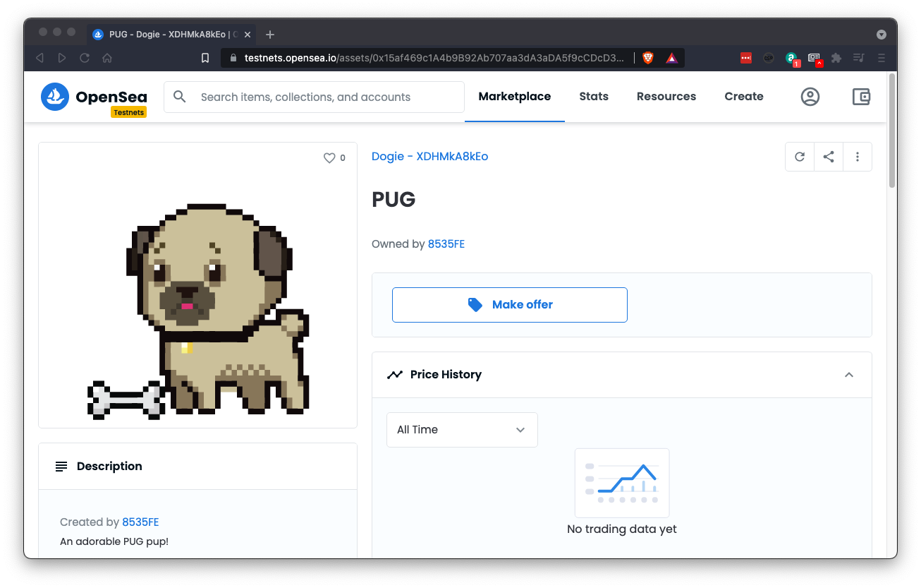 In a Web browser, go the URL indicated to see your PUG NFT, as shown below.