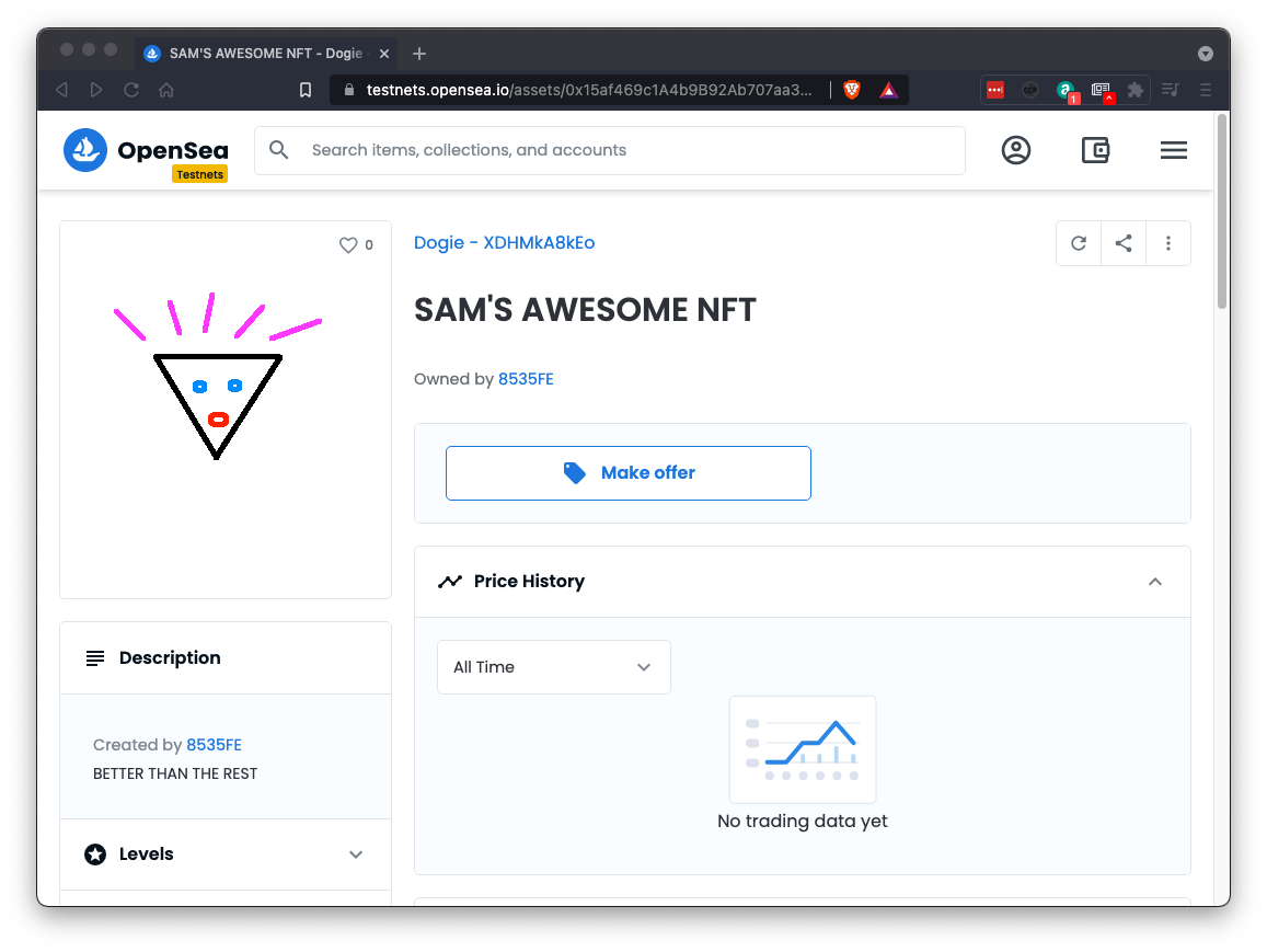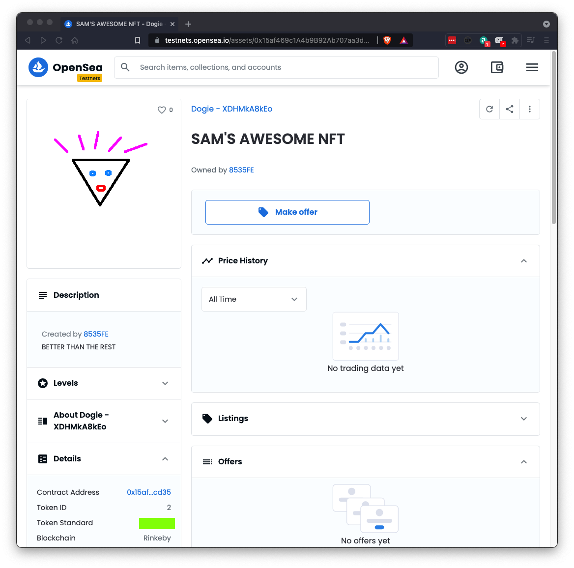 In a Web browser, go the URL indicated to see your custom NFT, as shown below.
