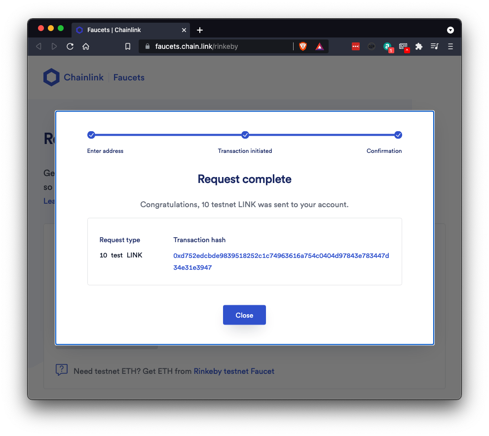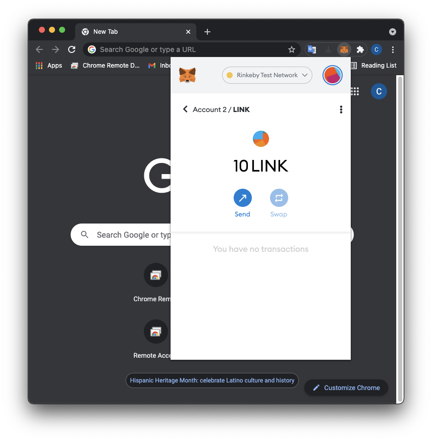 The ETH you have can pay for on-chain transactions. But we also need to perform off-chain transactions, and for that, we need LINK tokens.