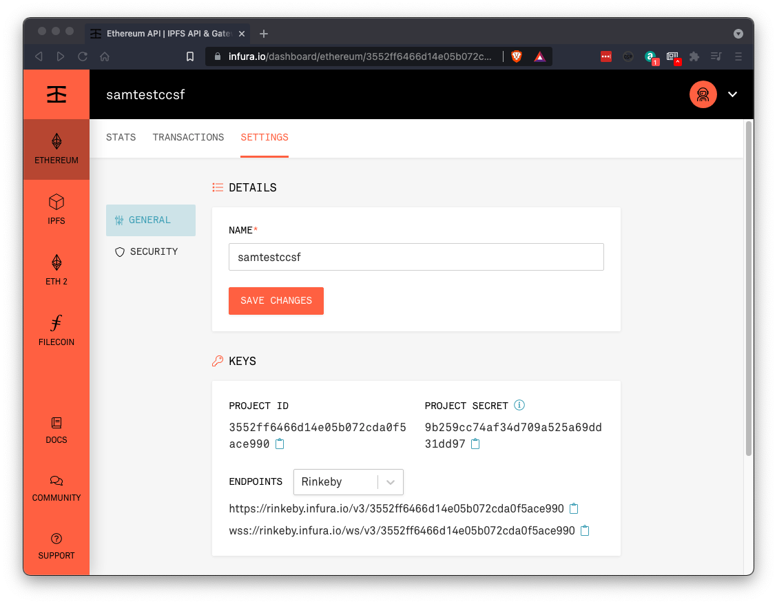 On the next page, at the bottom, in ENDPOINTS, select Rinkeby.