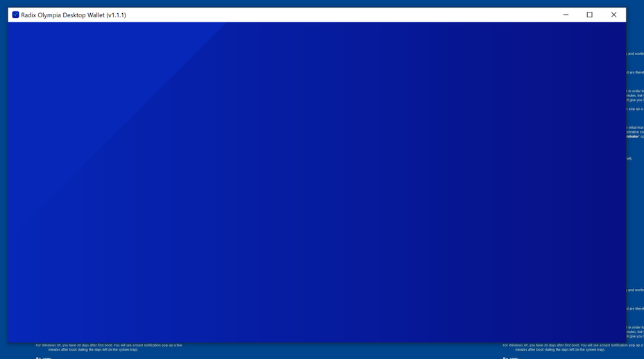 It may show a blank blue screen for a while, as shown below, because of problems on the Radix network. You may need to close it and re-open it a few times to connect.