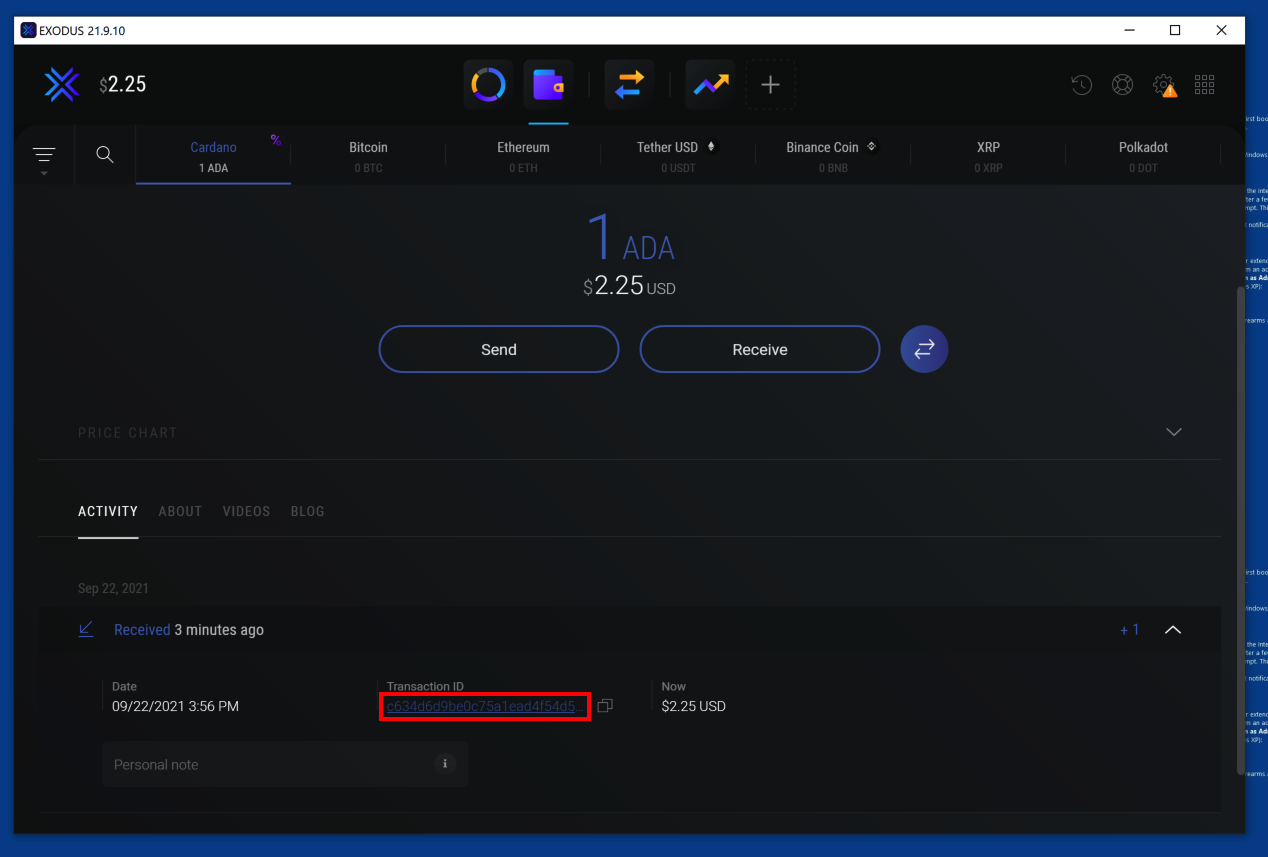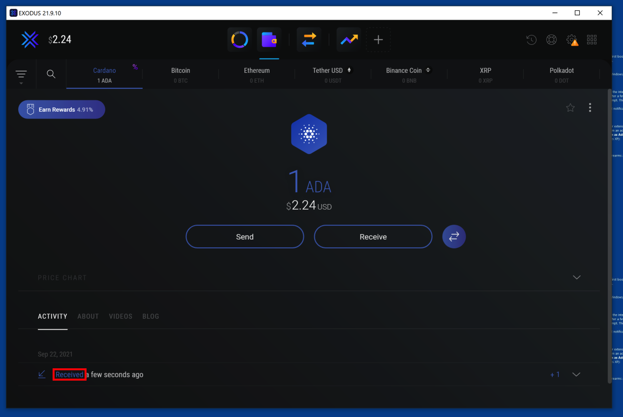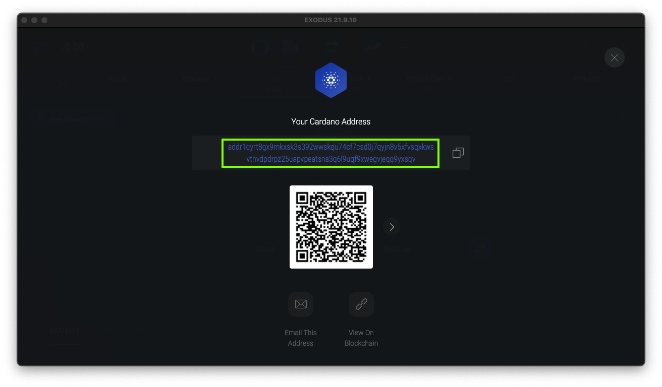 At the bottom of your Exodus window, click the blue Received link, outlined in red in the image above.