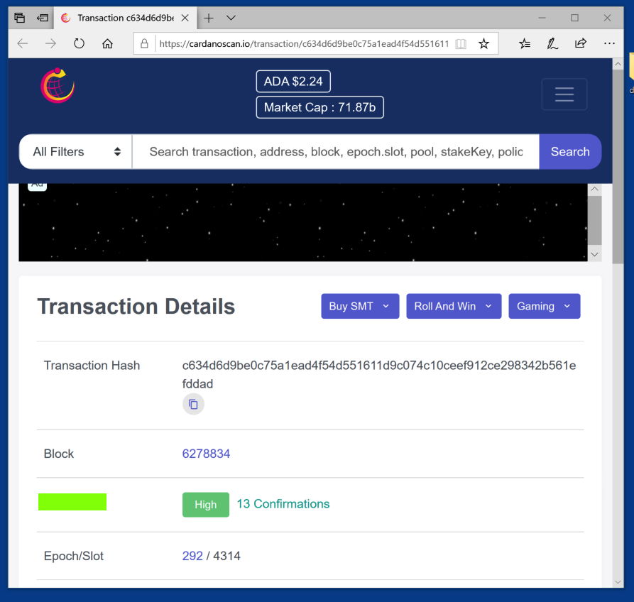 A Web page opens, showing details about your transaction.The flag is covered by a green rectangle in the image below.