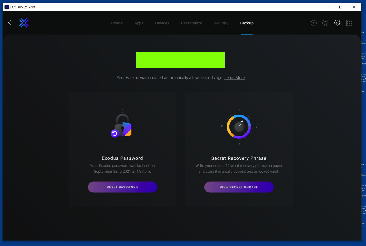 After you complete the four steps, the Backup tab opens, as shown below.The flag is covered by a green rectangle in the image below.