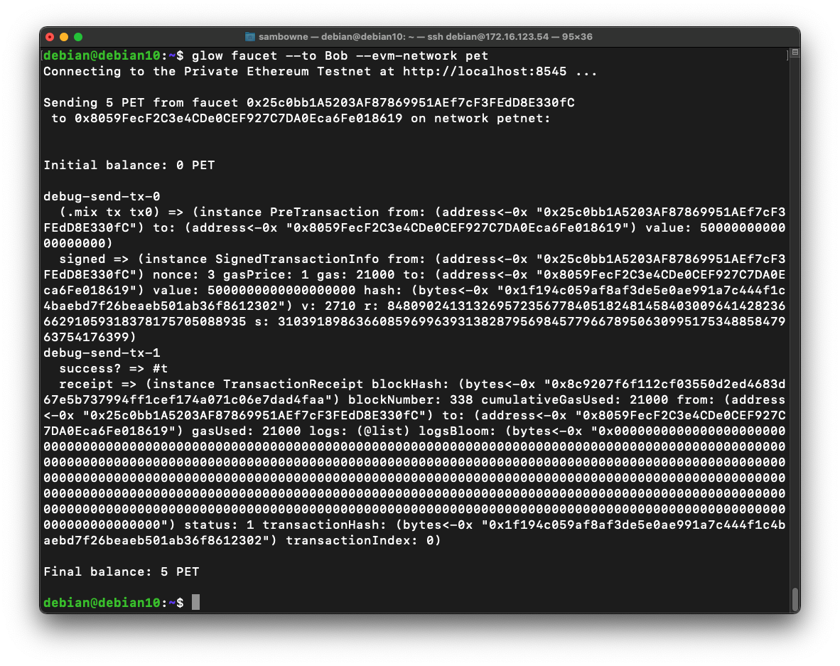 glow transfer --evm-network pet --database Alice -f Alice -t Bob -v 1